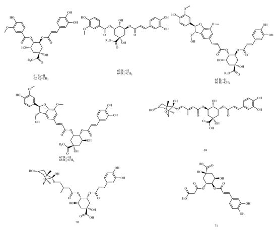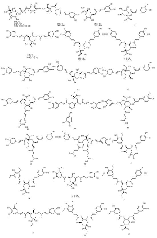 Caffeoyl ester derivatives are mainly synthesized by the ester formation of caffeic acid with different alcohols. Caffeic acid amide derivatives are produced by the condensation reaction between caffeic acid and amino acids. Caffeoyl tartaric acids are produced by the condensation of tartaric acid and caffeic acid through esterification. Caffeoyl shikimic acid is condensed from shikimic acid and caffeic acid by an esterification reaction. Caffeoyl quinic acid is a class of phenolic acid natural ingredients formed by the condensation of quinic acid with a varying number of caffeic acids through esterification. Because the carboxyl group of caffeic acid and the three hydroxyl groups on the alicyclic ring of quinic acid mangiferylate are easily acylated, the isomers are particularly abundant. Caffeoyl danshensu is formed by the esterification and condensation of caffeic acid and its hydrated product 3,4-dihydroxyphenyllactic acid. The main types of sugars in caffeoyl glycoside are glucose, rhamnose, xylose, furanose and glucuronic acid. The classification of sugar type mainly depends on acid hydrolysis, gas chromatography-mass spectrometry (GC–MS), NMR and other technologies.