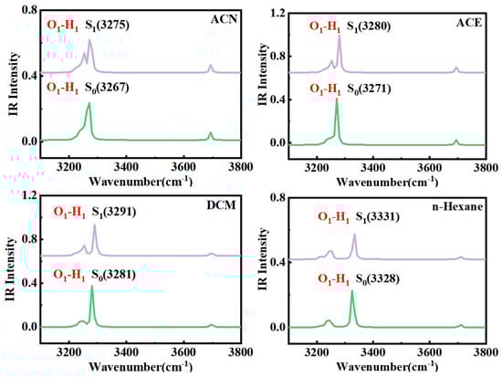 Infrared (IR) vibrational spectra of O1–H1 and N1-H1 bonds for HTP-1 in the S0 and S1 states.