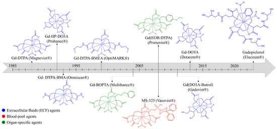 Chronological chart of clinical GBCAs and their FDA approval years (in the U.S.).