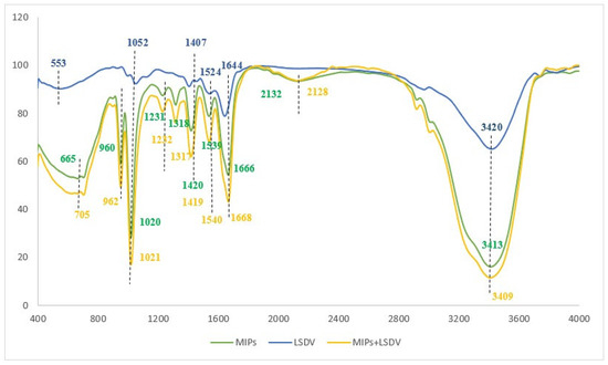 FT-IR spectra of the LSDV, MIPs, and MIPs with LSDV.