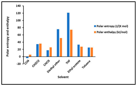 The polar enthalpy and entropy of organic molecules were then determined from the variations of using the following thermodynamic relations:
