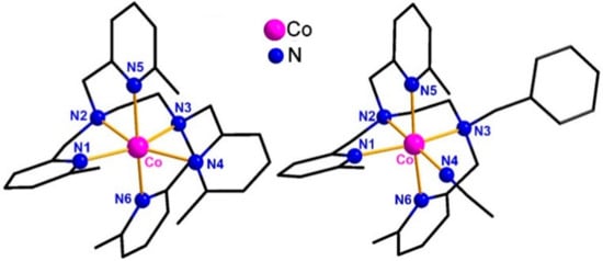 - Szalda, D.J.; Fujita, E.; Creutz, C. Cobalt(I), -(II), and -(III) Complexes of a Tetraaza 14-membered Macrocycle, 5,7,7,12,14,14-hexamethyl-1,4,8,11-tetraazacyclotetradeca-4,11-diene (L). Crystal and Molecular Structures of [CoL(CO)]ClO4, trans-CoLCl2, and cis-[CoL(CO3)]ClO4. Inorg. Chem. 1989, 28, 1446–1450. [Google Scholar] [CrossRef]