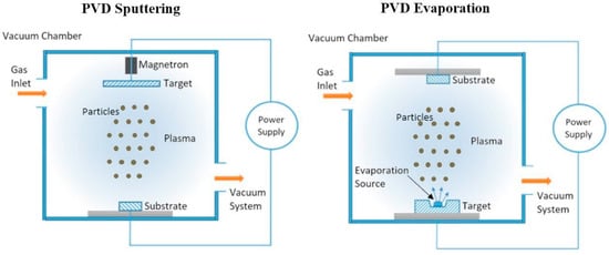 Illustration of the PVD; magnetron sputtering and evaporation coating methods [96].