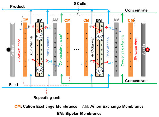 - İpekçi, D.; Altıok, E.; Bunani, S.; Yoshizuka, K.; Nishihama, S.; Arda, M.; Kabay, N. Effect of acid-base solutions used in acid-base compartments for simultaneous recovery of lithium and boron from aqueous solution using bipolar membrane electrodialysis (BMED). Desalination 2018, 448, 69–75. [Google Scholar] [CrossRef]