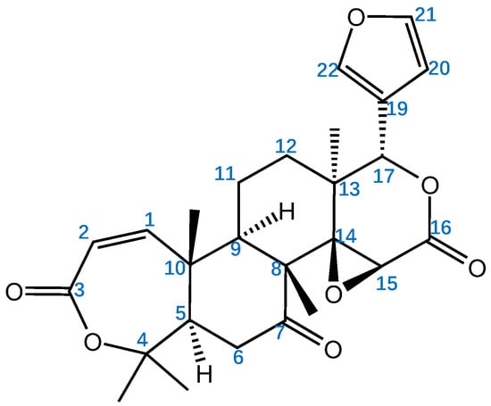 Previous studies have shown that obacunone is cytotoxic to human NSCLC A549 cells (IC50 = 25 μM [20,30]) and melanoma SK-MEL-2 cells (IC50 = 19.71 μg/mL) [20].