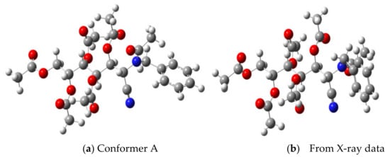 - Sweeting, M.; Coxon, B.; Varma, R. Conformational analysis of peracetylated hexononitriles. Carbohydr. Res. 1979, 72, 43–55. [Google Scholar] [CrossRef]