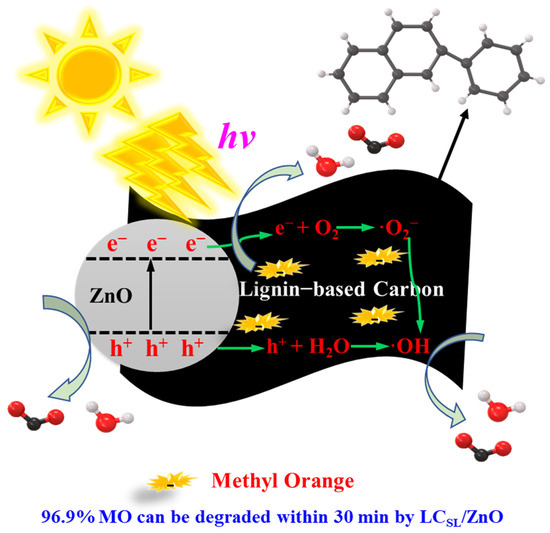 - Li, T.; Pan, H.; Xu, L.; Shen, Y.; Li, K. Preparation and properties of lignin-based carbon/ZnO photocatalytic materials. J. Porous Mater. 2022, 29, 1883–1893. [Google Scholar] [CrossRef]