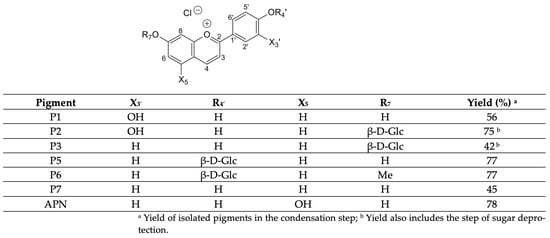 - Al Bittar, S.; Mora, N.; Loonis, M.; Dangles, O. A Simple Synthesis of 3-Deoxyanthocyanidins and Their O-Glucosides. Tetrahedron 2016, 72, 4294–4302. [Google Scholar] [CrossRef]