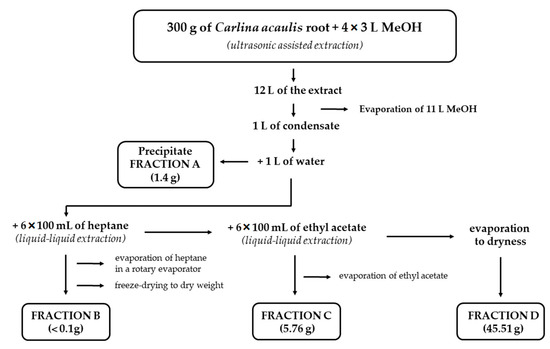 Procedure for fractionation of the methanol extract from Carlina acaulis L. root.
