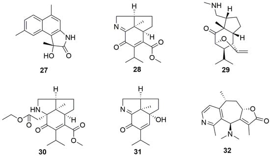 2.2. Sesquiterpene Alkaloids (27–32)