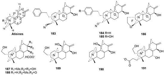 - Wang, F.P.; Chen, Q.H.; Liu, X.Y. Diterpenoid alkaloids. Nat. Prod. Rep. 2010, 27, 529–570. [Google Scholar] [CrossRef] [PubMed]