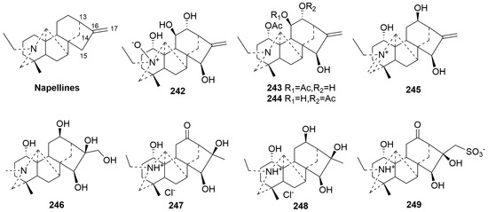 - Thawabteh, A.M.; Thawabteh, A.; Lelario, F.; Bufo, S.A.; Scrano, L. Classification, Toxicity and Bioactivity of Natural Diterpenoid Alkaloids. Molecules 2021, 26, 4103. [Google Scholar] [CrossRef] [PubMed]
