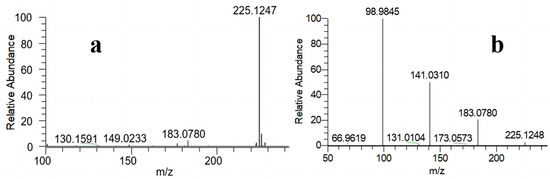 Qualitatively analyzed TnPP using HRMS: (a) the primary mass spectrum of TnPP; (b) the secondary mass spectrum of TnPP.