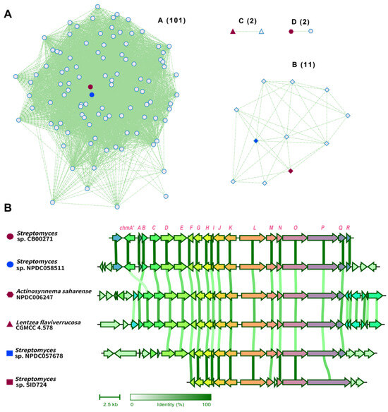 3.6. Gene Cluster Similarity Network Analysis of chm Genes in Public Databases