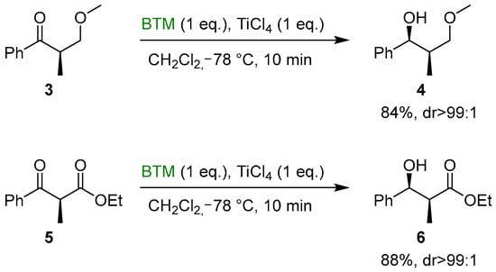 The formation of a chelate between the Lewis acid and substrates 3 and 5 proved to be effective for the completely diastereoselective reduction to the corresponding alcohols 4 and 6 (Scheme 2) [].
