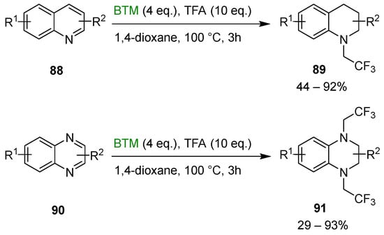 The synthetic method was successfully extended to the synthesis of N-trifluoroethylated tetrahydroquinoline 89 and N-trifluoroethylated tetrahydroquinoxalines 91 (Scheme 28) [].