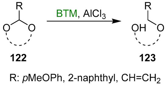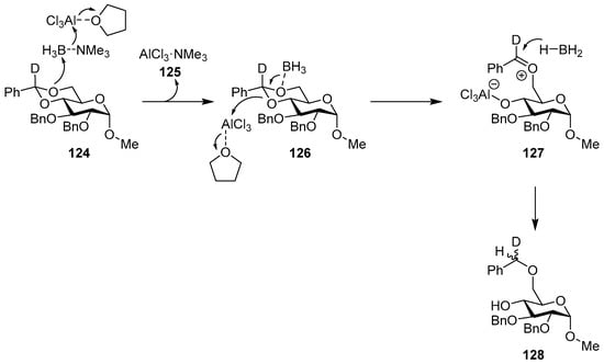 - Johnsson, R.; Cukalevski, R.; Dragén, F.; Ivanisevic, D.; Johansson, I.; Petersson, L.; Wettergren, E.E.; Yam, K.B.; Yang, B.; Ellervik, U. Reductive openings of benzylidene acetals. kinetic studies of borane and alane activation by lewis acids. Carbohydr. Res. 2008, 343, 2997–3000. [Google Scholar] [CrossRef] [PubMed]