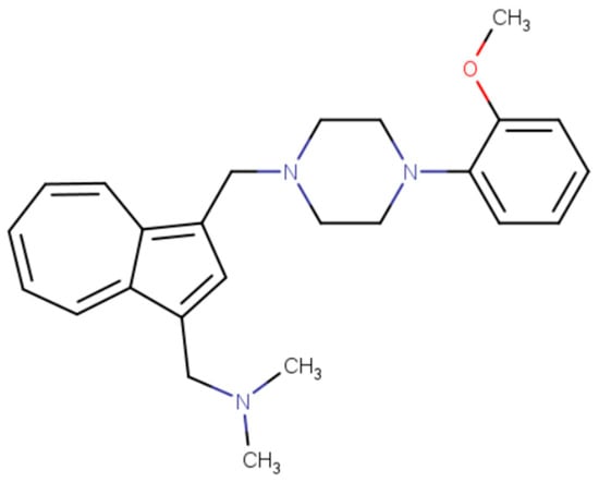 In a study conducted by S. Löber et al. in 2012, azulene derivatives were investigated in the context of erectile dysfunction. As part of the experiment, a series of azulene derivatives were synthesized and their affinity to monoaminergic G protein-coupled receptors (GPCRs) was determined including dopamine, serotonin, histamine, and α-adrenergic receptors. Analysis of the activity of the most promising compounds revealed that the derivative presented in Figure 6 is a promising partial agonist of the D4 receptor (EC50 = 0.41 nM). The study assessed the compound’s ability to stimulate penile erection. Using an in vivo animal model in rats, the compound was found to effectively stimulate penile erection in males, exhibiting higher activity at low concentrations compared to apomorphine. The results obtained suggest that azulene derivatives, especially the one presented in Figure 6, may represent a promising substance for the development of drugs used in erectile dysfunction [].