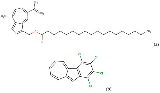 Structural formula of [4-methyl-7-(prop-1-en-2-yl)azulen-1-yl]methyl octadecenoate (a) and 1,2,3,4-tetrachlorobenzo[a]azulene (b) presenting exemplary chemical compounds as a perspective for further research in terms of therapy.