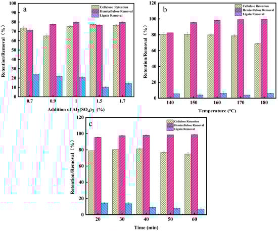 A comparative study with other selective removal and pretreatment techniques of hemicellulose was carried out. The results are presented in Supplementary Materials Table S1. Compared with other pretreatment techniques, the pretreatment combination of aluminum sulfate with dilute sulfuric acid used in this study obtained the highest hemicellulose removal rate.