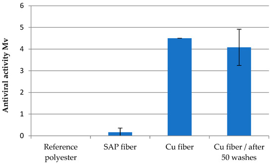 Antiviral effectivity (Mv) of Cu fiber before and after washing.
