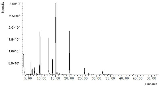 GC-MS analysis of Cinnamomum burmannii essential oil total ion flow diagram.