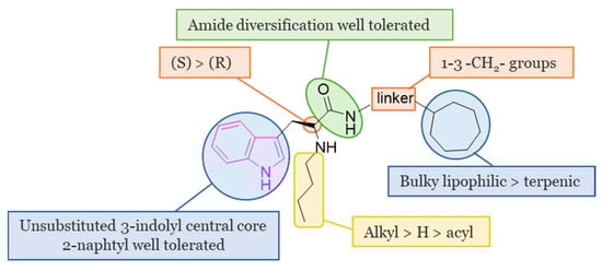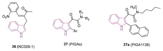 - Taliani, S.; Da Settimo, F.; Martini, C.; Laneri, S.; Novellino, E.; Greco, G. Exploiting the Indole Scaffold to Design Compounds Binding to Different Pharmacological Targets. Molecules 2020, 25, 2331. [Google Scholar] [CrossRef]