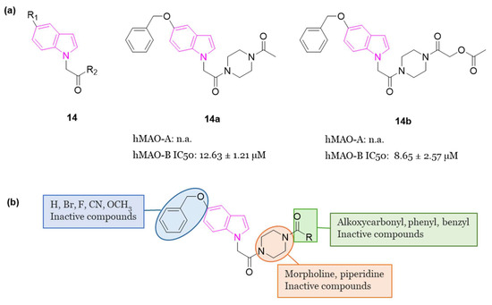 - Knez, D.; Hrast, M.; Frlan, R.; Pišlar, A.; Žakelj, S.; Kos, J.; Gobec, S. Indoles and 1-(3-(Benzyloxy)Benzyl)Piperazines: Reversible and Selective Monoamine Oxidase B Inhibitors Identified by Screening an in-House Compound Library. Bioorg. Chem. 2022, 119, 105581. [Google Scholar] [CrossRef]