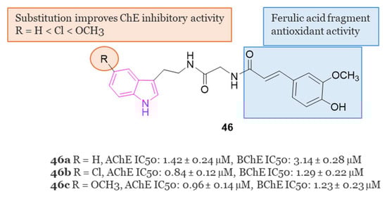 4.1. Indole Hybrids as Cholinesterase Inhibitors and/or Antioxidants