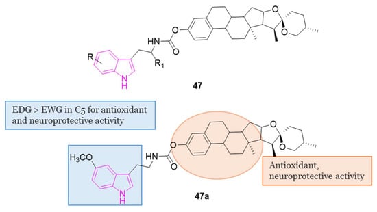 APA StyleBarresi, E., Baglini, E., Poggetti, V., Castagnoli, J., Giorgini, D., Salerno, S., Taliani, S., & Da Settimo, F. (2024). Indole-Based Compounds in the Development of Anti-Neurodegenerative Agents. Molecules, 29(9), 2127. https://doi.org/10.3390/molecules29092127