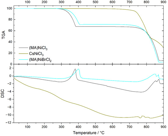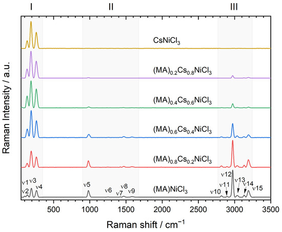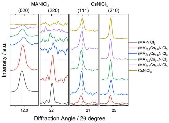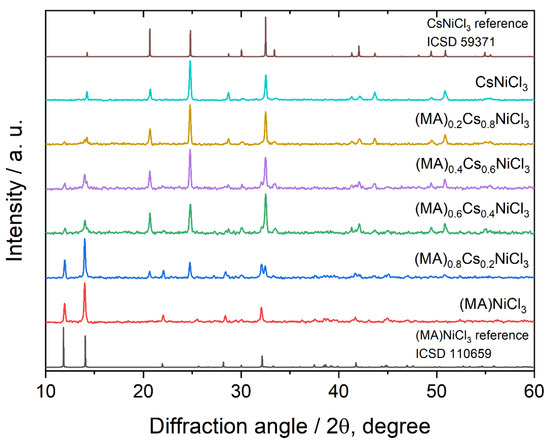 | (MA)NiCl3 | (MA)0.8Cs0.2 | (MA)0.6Cs0.4 | (MA)0.4Cs0.6 | (MA)0.2Cs0.8 | CsNiCl3 | |