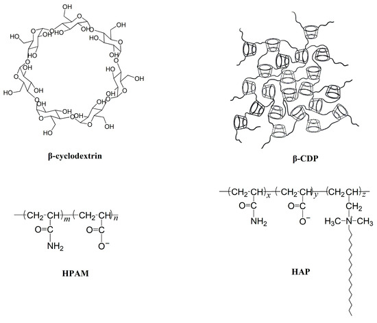 - Liu, X.; Jiang, W.; Gou, S.; Ye, Z.; Feng, M.; Lai, N.; Liang, L. Synthesis and evaluation of novel water-soluble copolymers based on acrylamide and modular β-cyclodextrin. Carbohyd. Polym. 2013, 96, 47–56. [Google Scholar] [CrossRef]