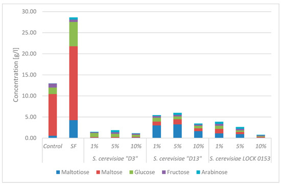 2.2.3. Fermentation Activity of Yeasts and Lactic Acid Bacteria—Production of Ethanol, Acetic Acid, and Lactic Acid