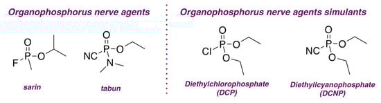 - Chen, L.; Wu, D.; Yoon, J. Recent advances in the development of chromophore-based chemosensors for nerve agents and phosgene. ACS Sens. 2018, 3, 27–43. [Google Scholar] [CrossRef] [PubMed]