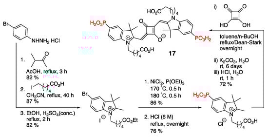Synthesis of water-soluble, phosphonate-containing squaraine dye 17.