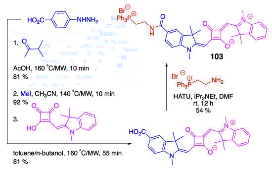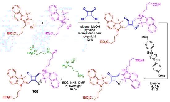 3.4. Phosphonium-Containing BODIPY and Squaraine Dyes