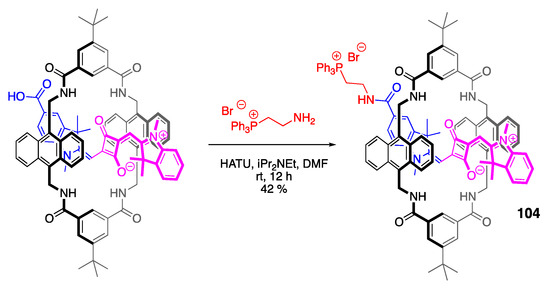 - Das, R.S.; Saha, P.C.; Sepay, N.; Mukherjee, A.; Chatterjee, S.; Guha, S. Design and synthesis of near-infrared mechanically interlocked molecules for specific targeting of mitochondria. Org. Lett. 2020, 22, 5839–5843. [Google Scholar] [CrossRef] [PubMed]