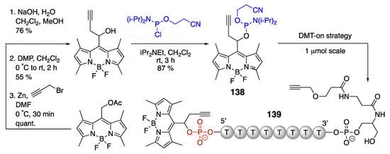 - Kaufmann, J.; Müller, P.; Andreadou, E.; Heckel, A. Green-light activatable BODIPY and coumarin 5’-caps for oligonucleotide photocaging. Chem. Eur. J. 2022, 28, e202200477. [Google Scholar] [CrossRef]