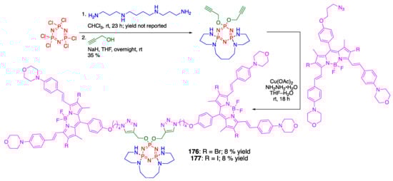 - Rao, M.R.; Bolligaria, R.; Butcher, R.J.; Ravikanth, M. Hexa boron-dipyrromethene cyclotriphosphazenes: Synthesis, crystal structure, and photophysical properties. Inorg. Chem. 2010, 49, 10606–10616. [Google Scholar] [CrossRef] [PubMed]