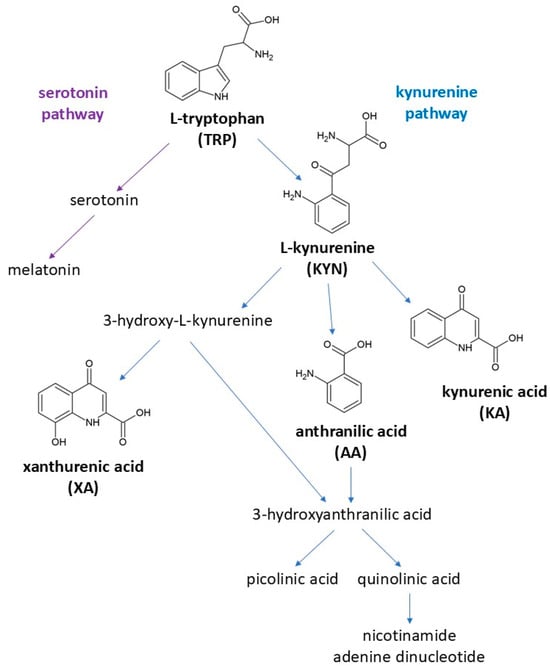 - Tsuji, A.; Ikeda, Y.; Yoshikawa, S.; Taniguchi, K.; Sawamura, H.; Morikawa, S.; Nakashima, M.; Asai, T.; Matsuda, S. The Tryptophan and Kynurenine Pathway Involved in the Development of Immune-Related Diseases. Int. J. Mol. Sci. 2023, 24, 5742. [Google Scholar] [CrossRef] [PubMed]