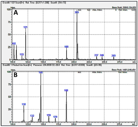 | Monitored MRM channel (Q1 > Q3, m/z) | TRP (204.8 > 145.9) | + [2.3 min] | - | - | - | - | - | - |