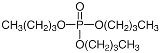 Amberlite XAD-16 was impregnated with tributyl phosphate (C12H27O4P), commonly known as TBP (Fluka AG, Buchs, Switzerland). It is a colorless and odorless organophosphorus liquid used in a solvent extraction as extractant or as a plasticizer for cellulose esters. Its structure is given in Figure 11.