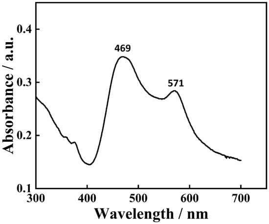 The PDI-CH3 molecules consisted of a perylene unit and N-methyl dicarboximides. The UV–Vis spectrum of the PDI-CH3 aqueous solution showed a wide absorption band of the perylene unit at 468 nm and 571 nm [42,43] (Figure 1). The absorption band at 468 nm was integrated by two absorption bands of A0–2 and A0–1 and the absorption band at 571 nm was from A0–0. The integrated absorption bands and the low ratio of A0–0/A0–1 indicated that PDI-CH3 molecules aggregated.