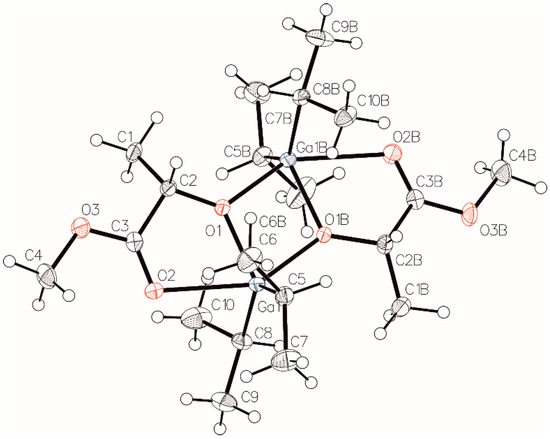 2.1. Structure of rac-[R2Ga(µ-OCH(Me)CO2Me]2 (R = Et (1), iPr (2))
