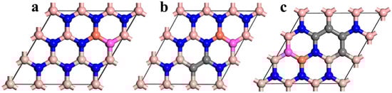 Structure of (a) Cu-Al co-doped BC0N, (b) Cu-Al co-doped BC1N and (c) Cu-Al co-doped BC2N.