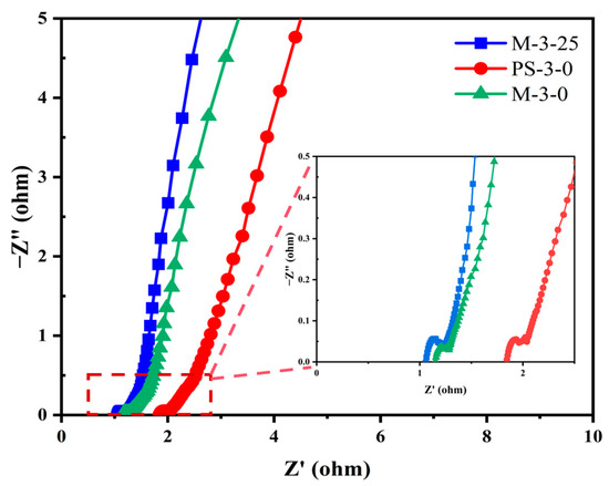 Nyquist plots of M-3-25, PS-3-0, and M-3-0.
