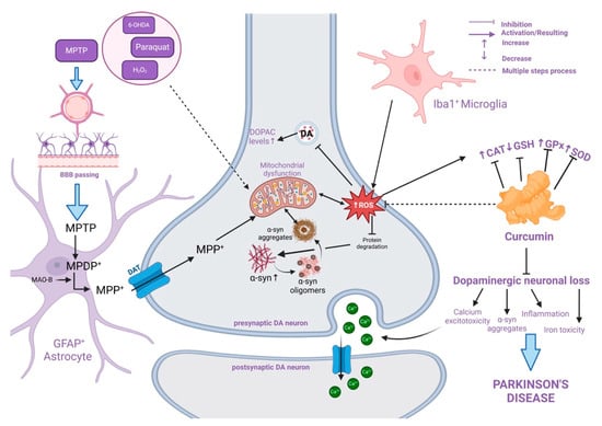 - Nebrisi, E.E. Neuroprotective Activities of Curcumin in Parkinson’s Disease: A Review of the Literature. Int. J. Mol. Sci. 2021, 22, 11248. [Google Scholar] [CrossRef]
