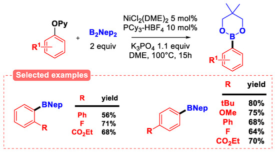 Ni-catalyzed borylation of 2-pyridyl aryl ethers [78].