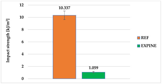 Averaged impact strength results of REF and EXPINE compositions are presented in Figure 8. The impact strength value of REF is comparable with other neat epoxy systems [65,66] and is almost 10 times greater than the EXPINE value.