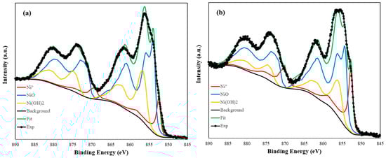 - Li, C.P.; Proctor, A.; Hercules, D.M. Curve Fitting Analysis of ESCA Ni 2p Spectra of Nickel-Oxygen Compounds and Ni/Al2 O3 Catalysts. Appl. Spectrosc. 1984, 38, 880–886. [Google Scholar] [CrossRef]